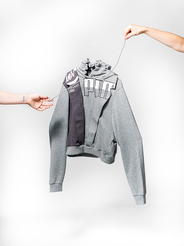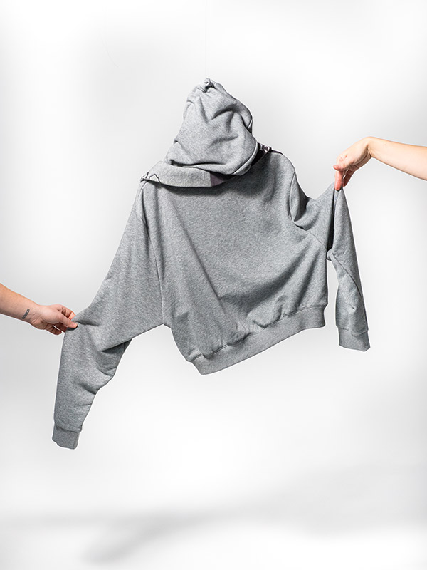 D8-konferenz 2010. Mark Zuckerberg trägt wie immer ein graues T-Shirt und einen schwarzen Hoodie. In den letzten zwei Jahrzehnten gab es einen immensen Aufstieg von Tech-Unternehmen und parallel dazu den Aufstieg einer sehr homogenen Gruppe von Tech-Menschen mit einem neuen Dresscode: Basic T-Shirt, Hoodie, Jeans. Die Designerin Luzie Richter fügt dem Hoodie mit dem aufgesetzten Revers ein formelles Element hinzu.