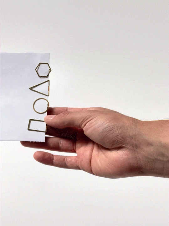 Mit den dekorativen Büroklammern halten Sie nicht nur Ihre Dokumente und Papiere in Ordnung. Mit einer Nadel an die Wand gepinnt, bieten sie eine schöne Möglichkeit Postkarten, Fotos oder kleine Nachrichten zu präsentieren. Das Set besteht aus 15 Büroklammern in drei unterschiedlichen Formen: Kreis, Dreieck und Sechskant.