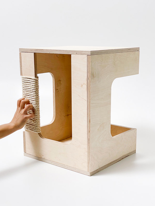 Ein gemeinsamer Stuhl für die eigene Katze und sich selbst? Nie wieder „nicht aufstehen“ können, weil die Katze auf dem Schoß liegt, sondern sich lieber zusammen einen Hocker teilen. Der Sharing Stool bietet nicht nur einen Katzenplatz zum Ausruhen, sondern auch einen Menschenplatz zum Arbeiten, Buch lesen oder Kaffeetrinken. Inklusive Katzen-Kratz-Stelle für die Pfoten.